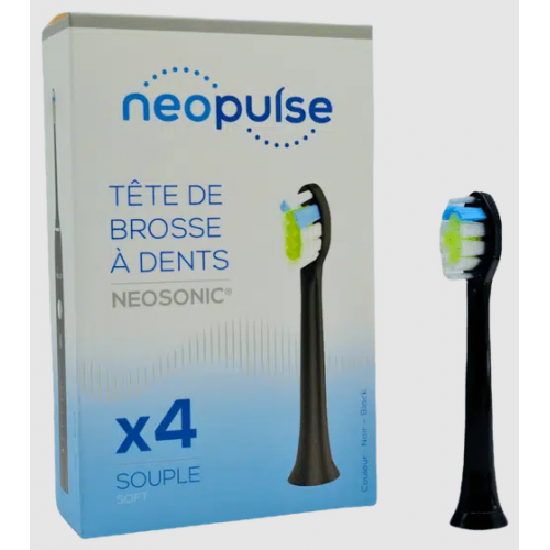 NEOPULSE NEOSONIC TETE DE BROSSE A DENTS ELECTRIQUE Souple - Noir x4