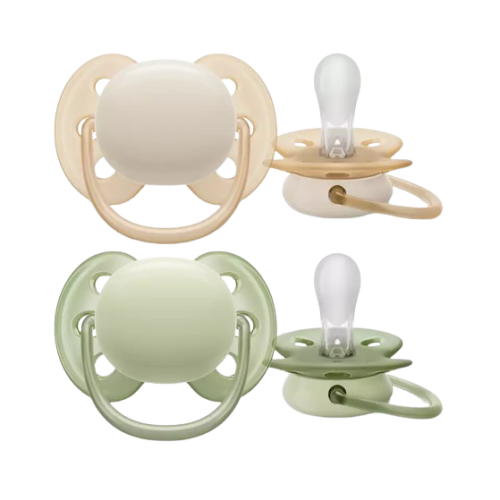 AVENT SUCETTE ULTRA SOFT 0-6 Mois Beige/Vert SCF091/32 - 2 Sucettes Orthodontique