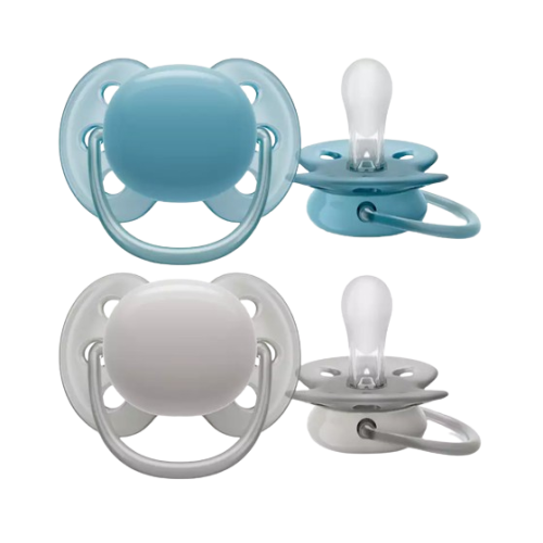 AVENT SUCETTE ULTRA SOFT 6-18 Mois Bleu/Gris SCF091/34 - 2 Sucettes Orthodontique
