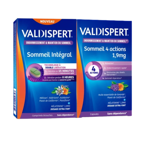 VALDISPERT SOMMEIL INTEGRAL Melatonine 1,9mg - 2x30 Comprimes + SOMMEIL 4 ACTIONS - 30 Capsules