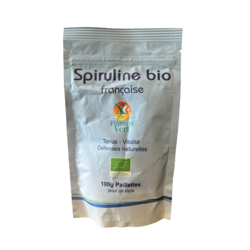 FLAMANT VERT Spiruline Bio en Paillettes - 100g